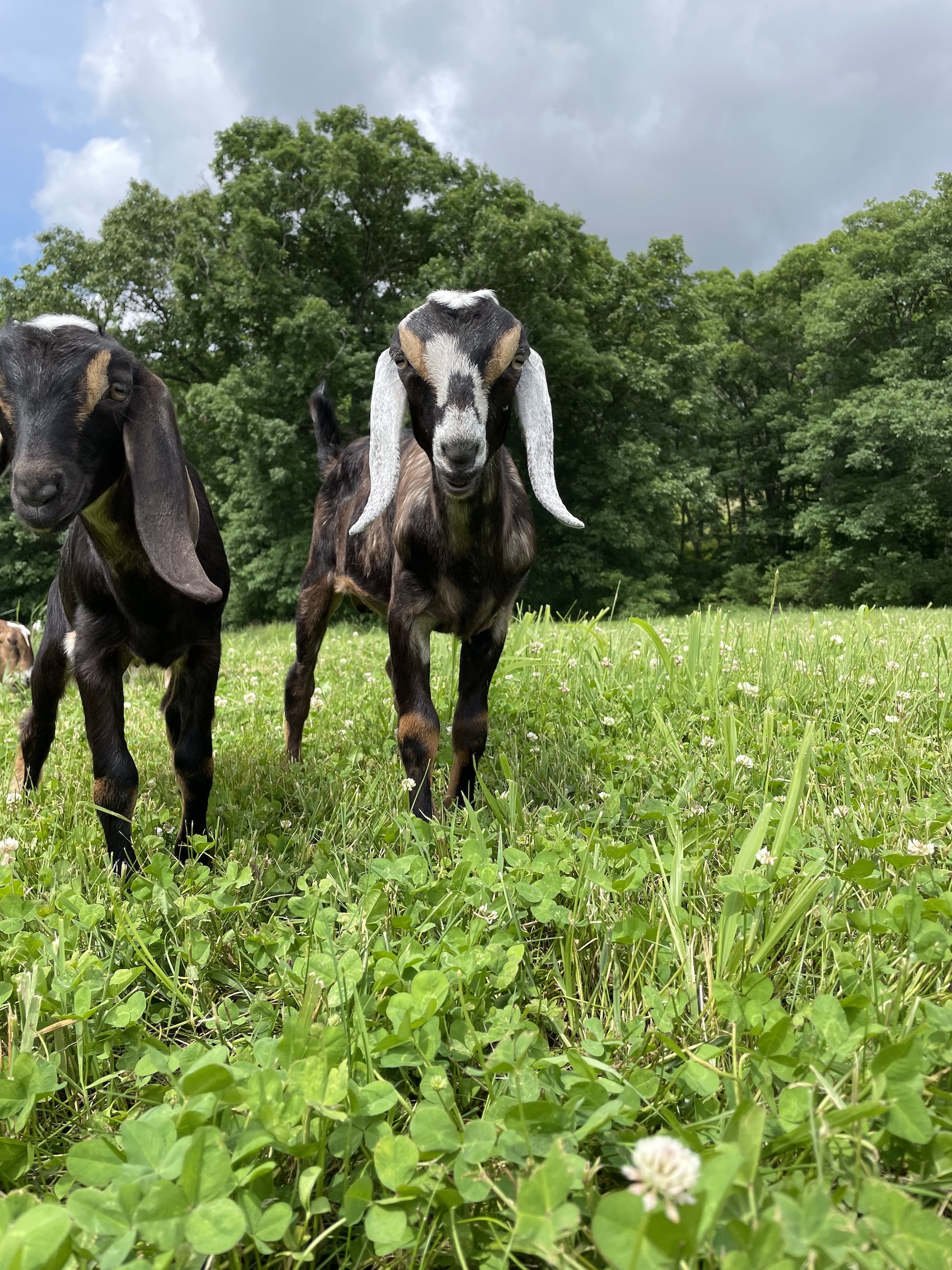We got three Nubians in 2021 and fell in love with these giant, grass eating puppies. They have BIG, loving personalities and are a very fun animal to raise. Flora and Frances were pregnant and kidded later that summer. Reba was still a growing yearling we decided to bring home with the other two girls because the more the merrier! As their doe kids grew up, we felt the pressure to add our first Nubian bucks.