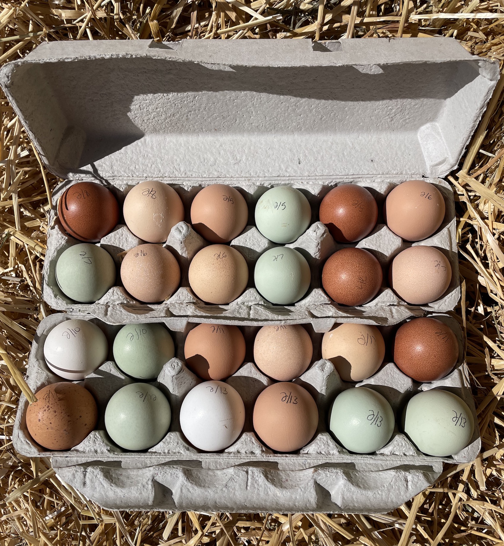 Eggs will usually look like this unless a customer requests a dozen of a particular color.