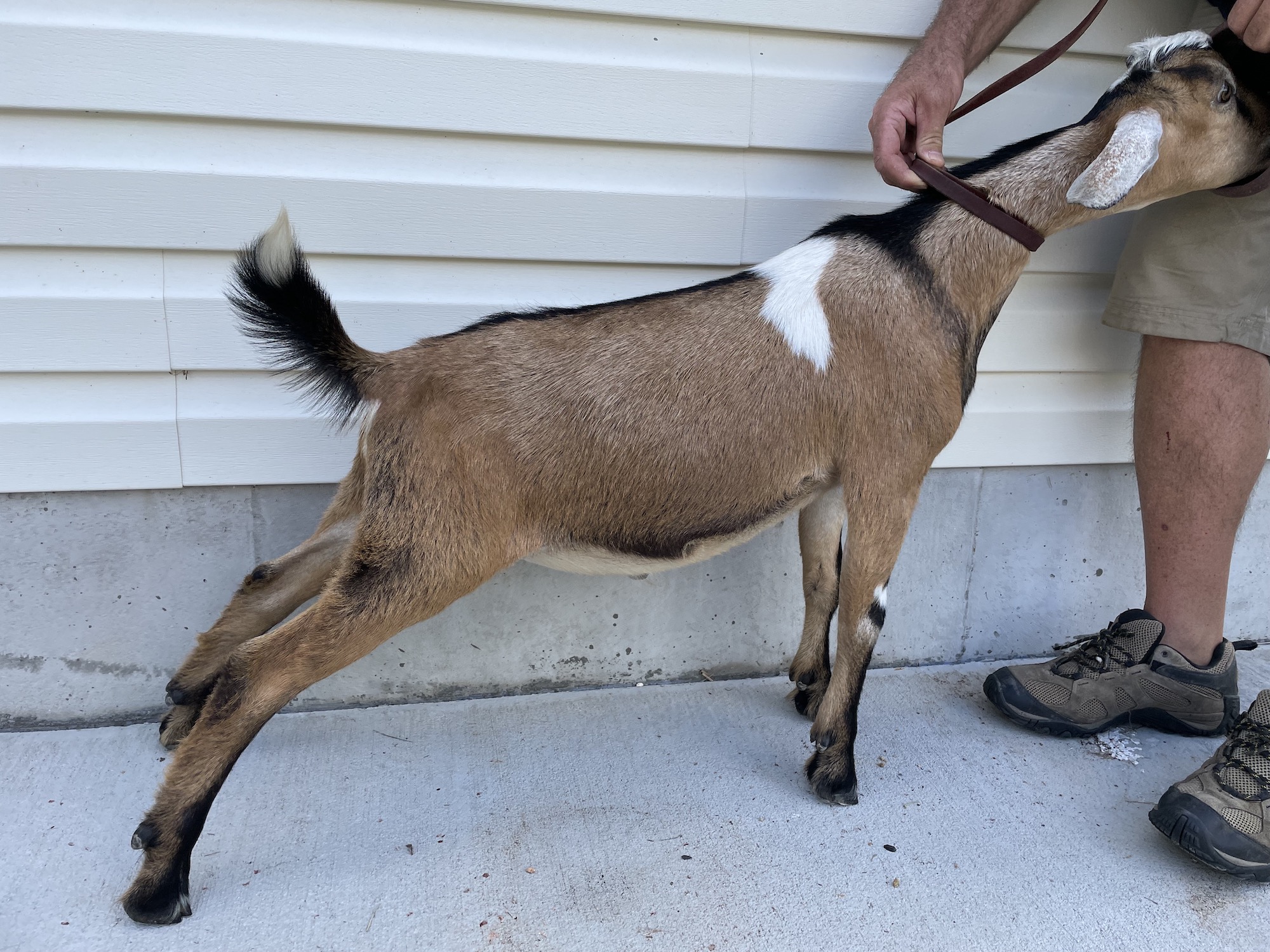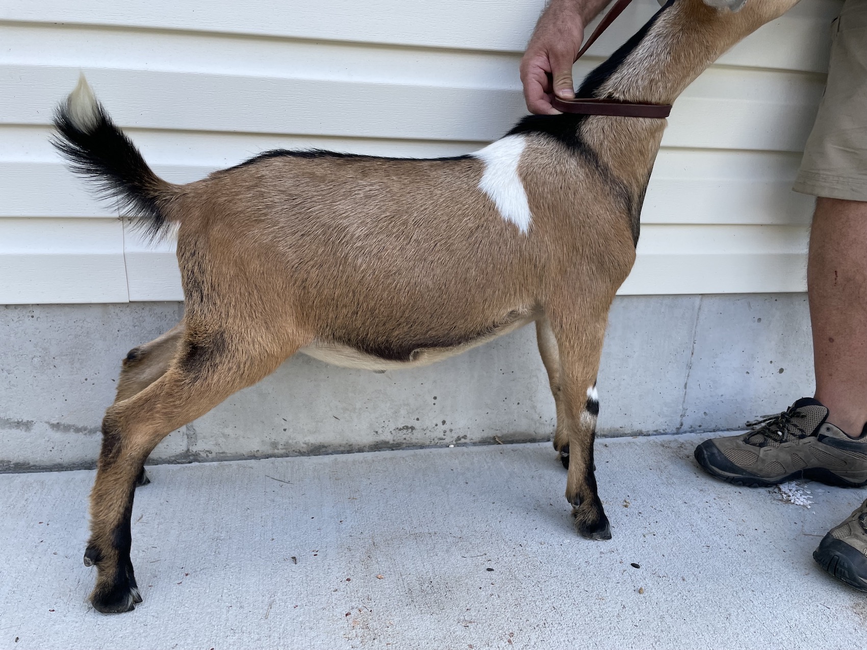 I decided to keep Ricky as a first generation Mini Nubian herd sire. His dam, Reba, will not be bred for Mini Nubians again, so it is a good choice. She has a very well attached udder, made a half gallon once a day milking as a first freshener, kidded quad does for me as a second freshener, and has a higher than average breed butterfat. Reba’s sire a champion buck and has some great milk lines behind her. I am so excited to start my own line of Mini Nubians! As a adult (need new pics), Ricky has a mild Roman nose, somewhere between airplane and 3/4 drop ears, an incredibly wide and deep body, wrinkly and soft dairy skin, a nice topline and rump angle, and great brisket extension. He is a powerful looking buck, but he is very sweet. I am really happy with him!