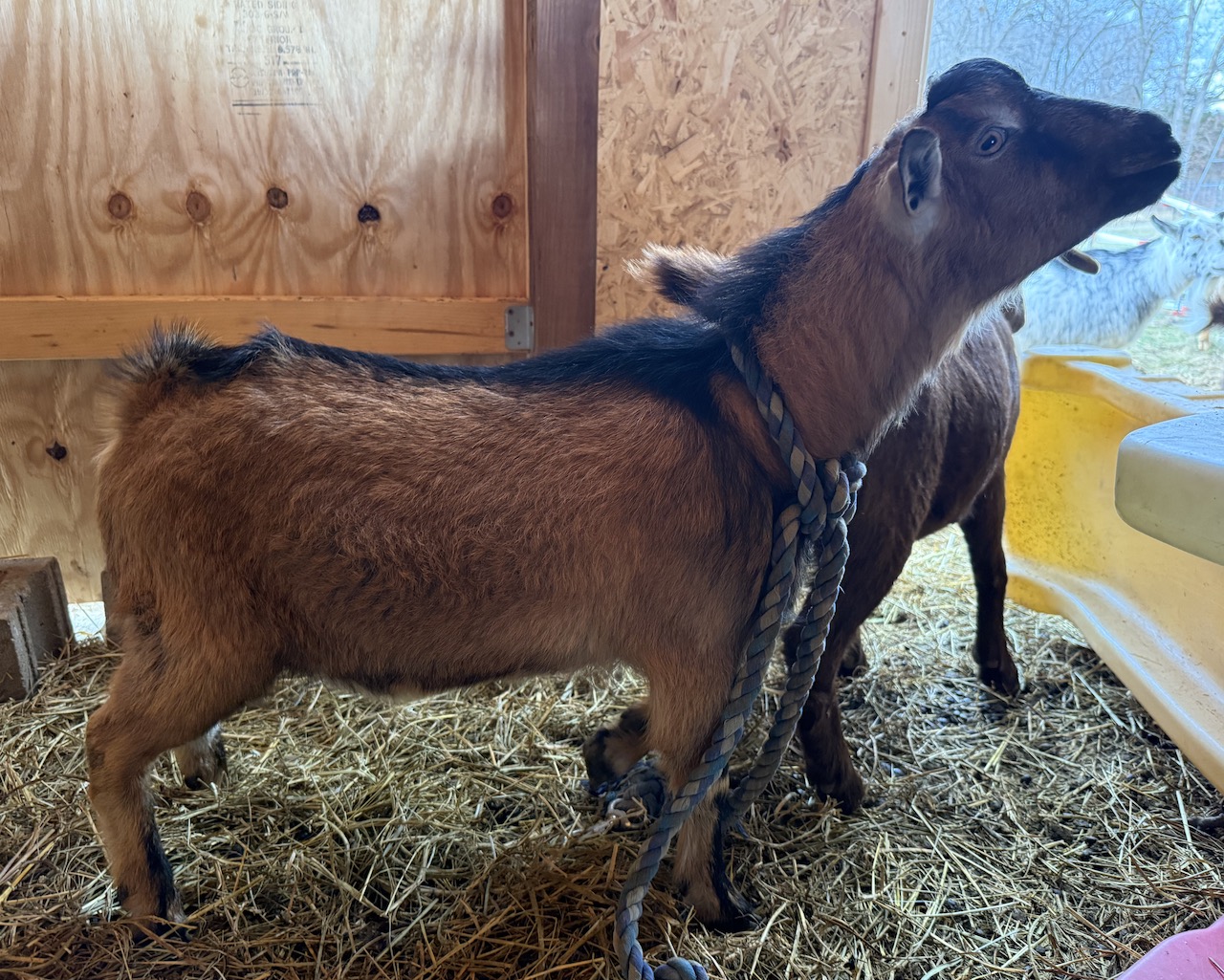Biscuit is son of RCornerRanch Butterscotch *M and RCornerRanch Enchanted Poet/Poe. His littermate sisters are Malibu Barbie and Leila. Amelia is his full older sister, and Marley, Knickknack, and Emma are his half sisters sired by Poe. He’s got a lot of growing to do, but I am hoping he may compliment my Mini Nubian does sired by my Nigerian buck, Dreams. We shall see!