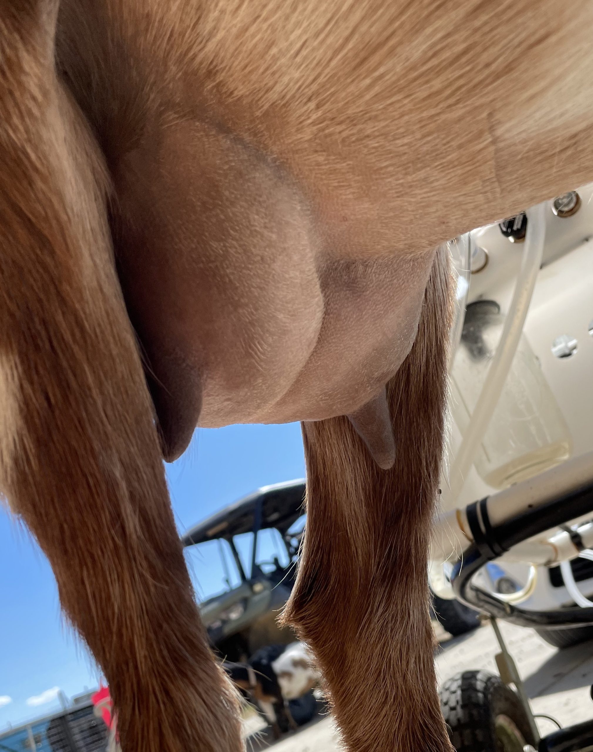 Axel’s dam, CMA IP Maybelline’s udder above. She had 3 Reserve Champion wins with the ADGA and Granch Champion wins with the NDGA. Images courtesy of Cade’s Lil Farm.